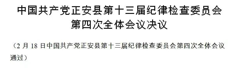 中国共产党正安县第十三届纪律检查委员会第四次全体会议决议
